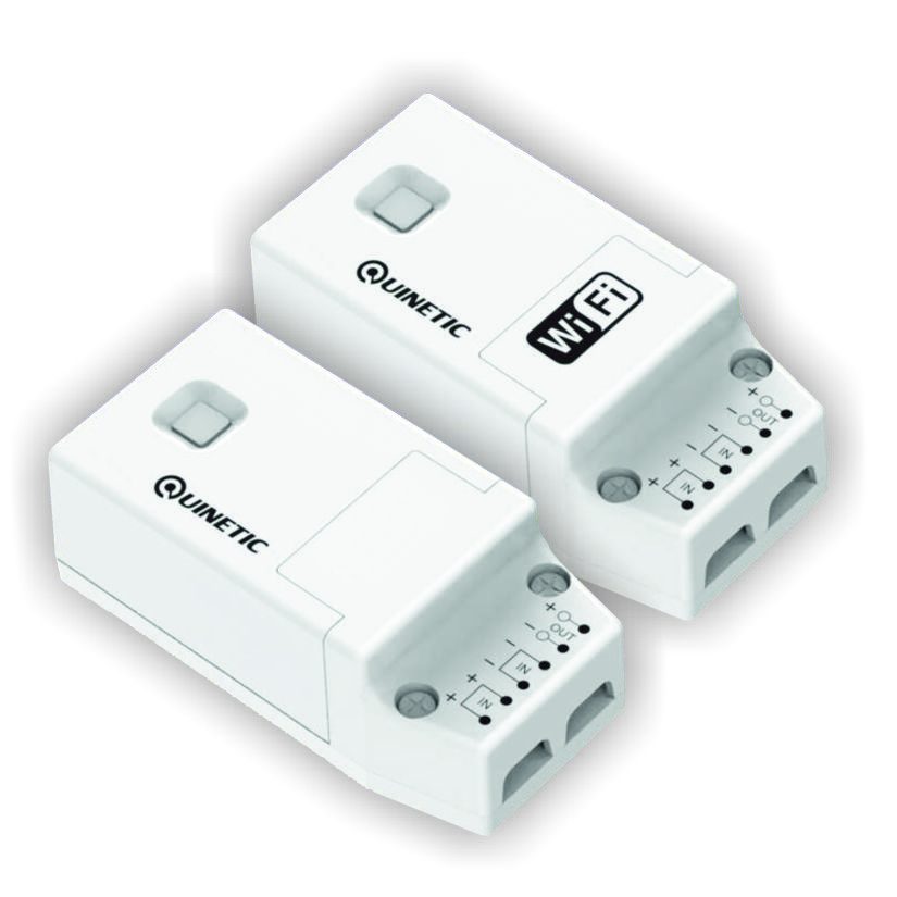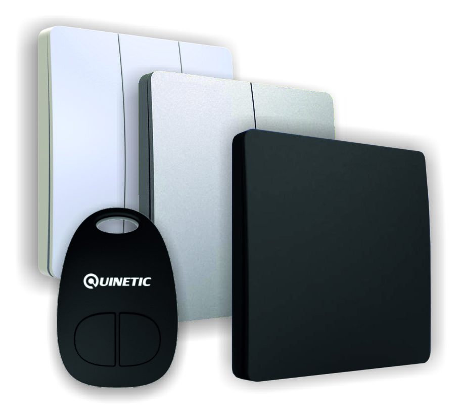 The Quinetic range offers an inspired solution in smart home technology. With a press of the switch, kinetic energy is generated and transmitted to a receiver and in turn will switch a device, a lamp for example, on or off.